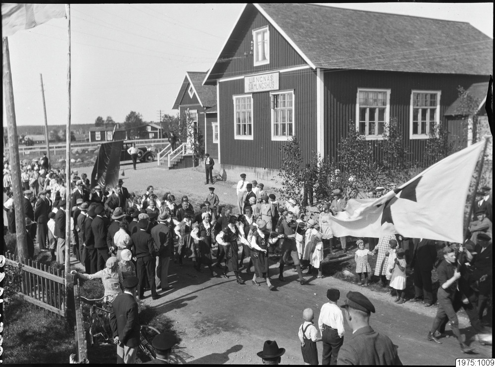 Långnäs samlingshus. Godtemplarungdom tågar till fest vid Siggan 1932 eller 1933.