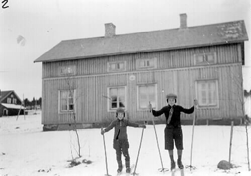"Stäfangården", byns posthus. Gösta Bergström och Erik Svanberg, fosterbarn hos Alvina Ahlström.
