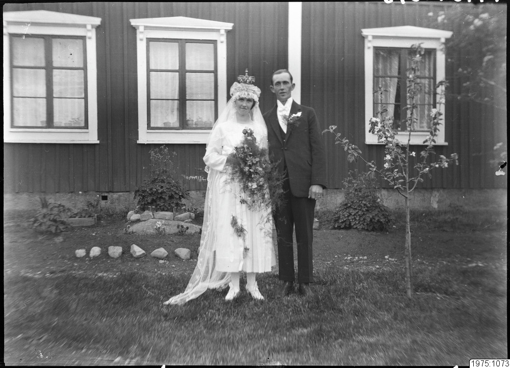 Brudparet Agda, född Karlsson och Yngve Lundström, Långnäs (hos Herman Lundströms) 1924.