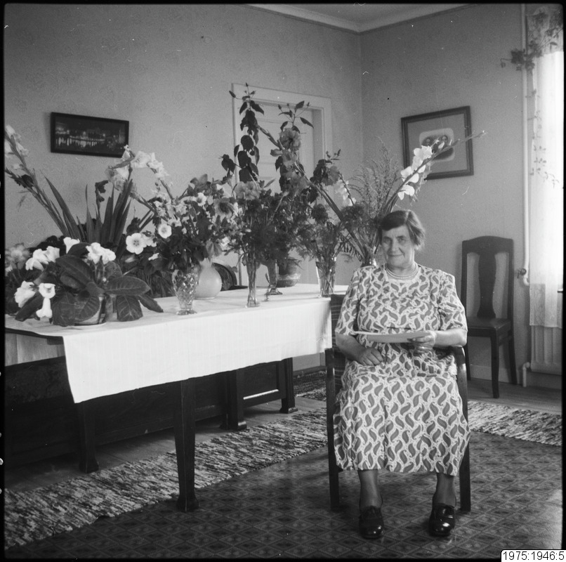Augusta Åström i hemmet, Rågholmen. Hon fyller antingen 50 eller 60 år.