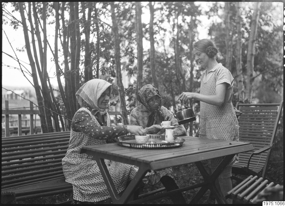 Sunderbyn i början av 1930-talet. Sally Eriksson, Adina Nyberg-Beckström, Anna Brännström.