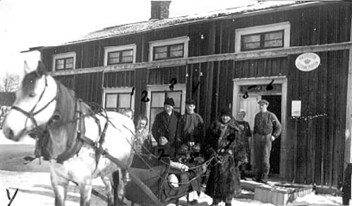 - Hos Johan Häggström i Långnäs i slutet av 1920- eller början av 1930-talet. 1. Ester Häggström, 2. Ingeborg Häggström, 3. Gustav Karlsson, 4. Ivar Öjmark, 5. Amanda Lindvall, 6. Martin Häggström, 7. Evert Liebert, 8. Margareta Sandström, 9. Johan Häggström.