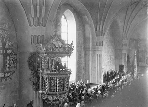 Biskop Olof Bergqvist predikar i Nederluleå kyrka vid en visitation på 1940-talet.