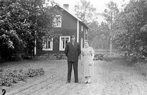 "Ärik-Käll"-Egon Nordström och hustrun Jenny, född Markström, utanför hemmet i Långnäs på 1940-talet.