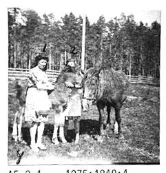 Gunvor och Gudrun Hansson i hästhagen.