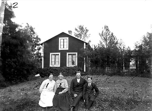- 1. Elina Nordström, född Isaksson, 2. Anna Nordström, 3. Egon Nordström, 4. Arne fosterson Ärik-Käll Långnäs. Tillägg: Det fanns en Elina Nordström som var gift med Hjalmar Isaksson "Nitz" Långnäs. Någon Elina Nordström, född Isaksson i Långnäs är ej känd. Källla: Enligt skriftliga uppgifter till Ove Brännholm, Norrbottens museum, från Birgitta Thurfjell, Alvik 1999-06-03. Inskrivet 1999-06-09 av Margareta Johansson, Norrbottens museum.