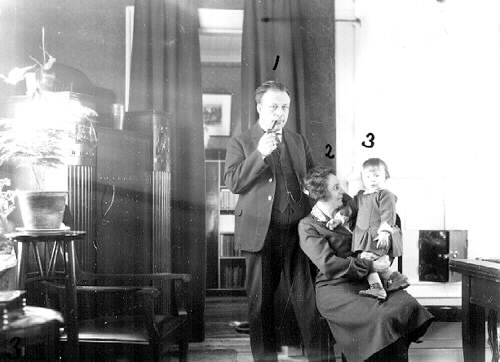 Kantor Julius Sundström med hustrun Tensia och dottern Karin (?) omkring 1930.