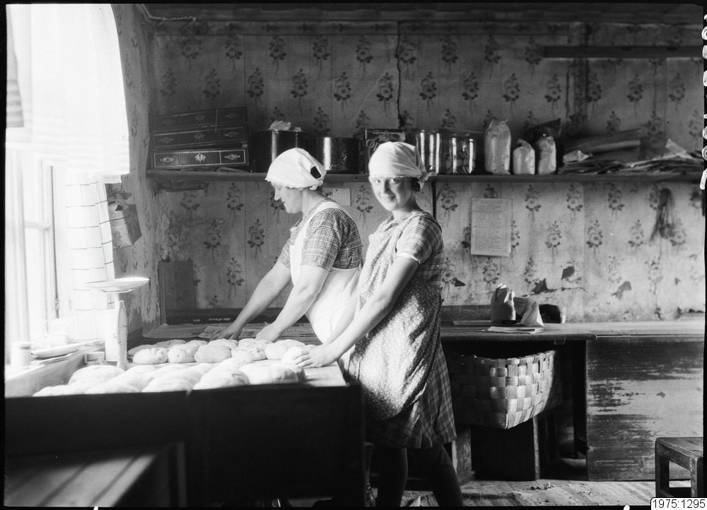 Bagerskan Emma Andersson och henns systerdotter Hilma Liljedahl, Alvik. Bakade skorpor och mockabakelser som ännu talas om i Alvik. Upplät sitt hem för fosterbarn.