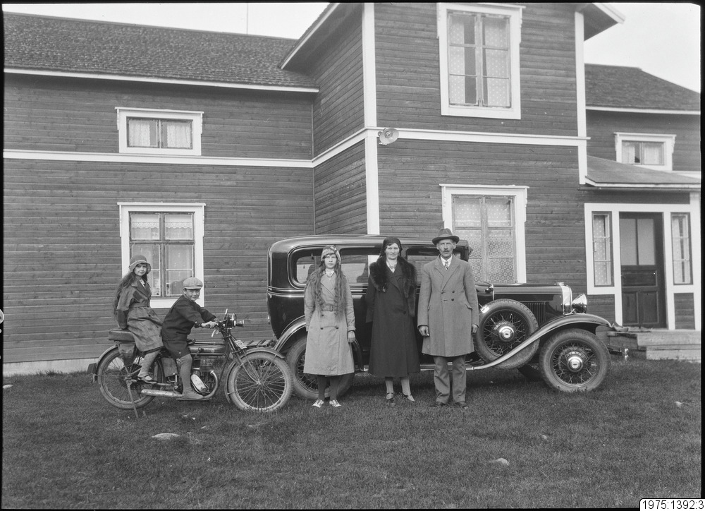 1975:1392:3 :: bostadshus, personbil, motorcykel, familj
