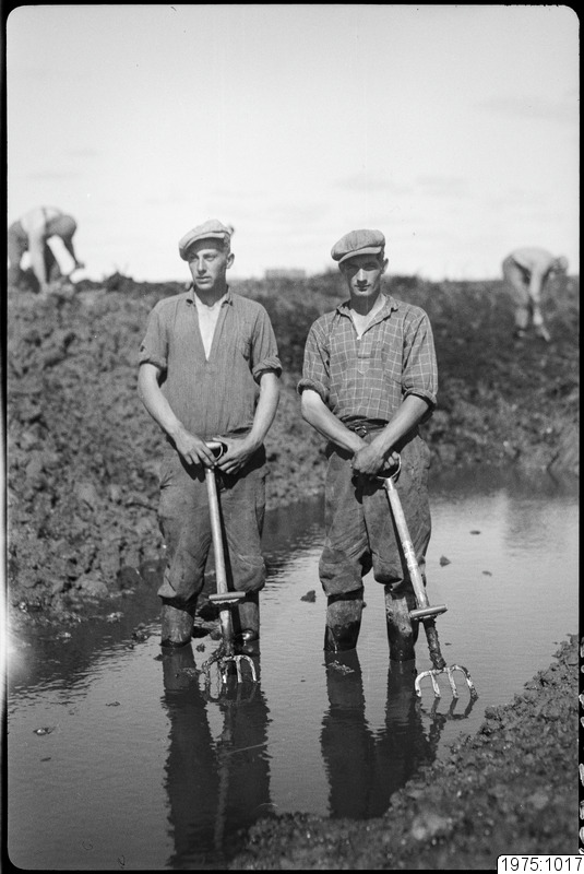 Rensning av krondike. Gustav Vikström, Långnäs och Seth Lindström, Långnäs.