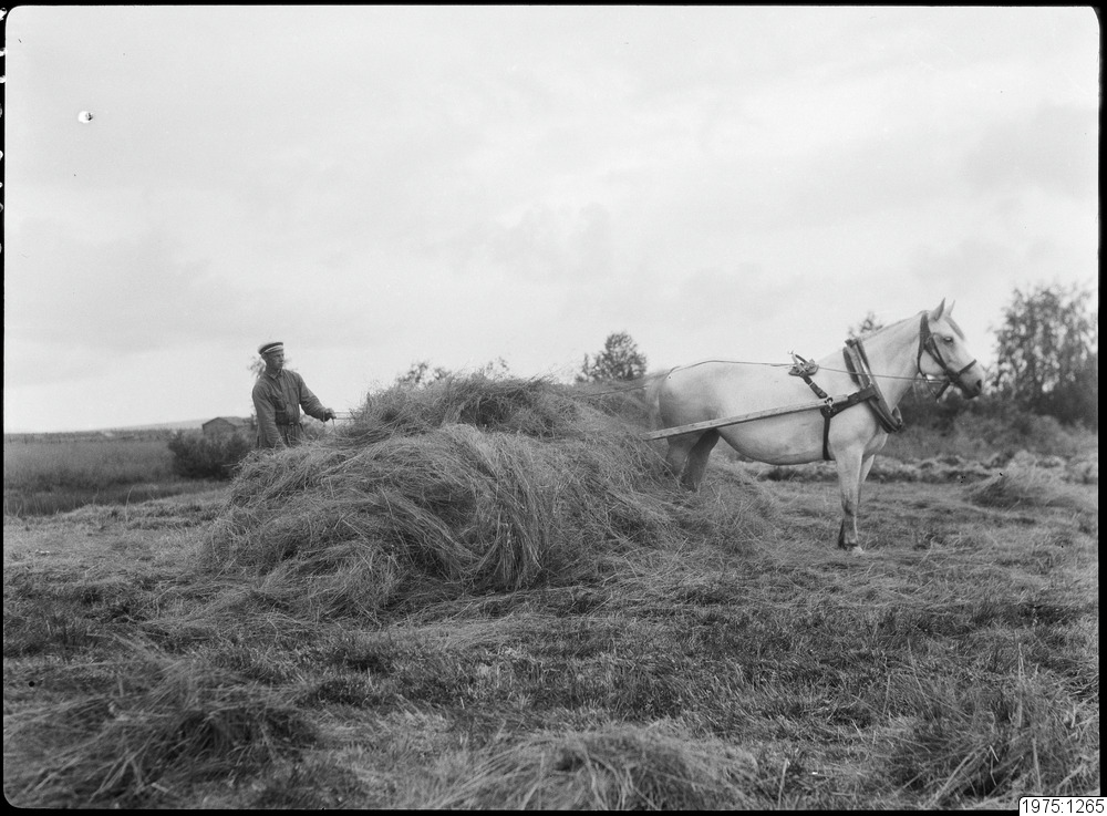 1975:1265 :: husdjur, häst, höbärgning, redskap, släpräfsa