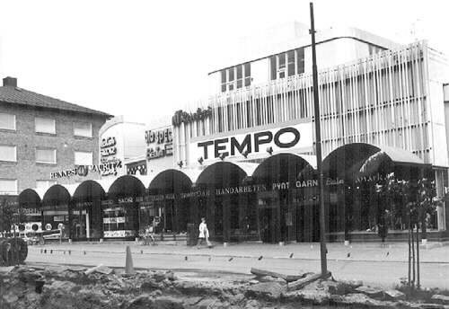 Shoppingcenter, ritat av Ralph Erskine 1952 och invigt i oktober 1955. Under ett och samma tak inrymdes ett varuhus, ca 40 småbutiker, frisörsalonger, biograf, konditori, restaurang, utställningshall etc.