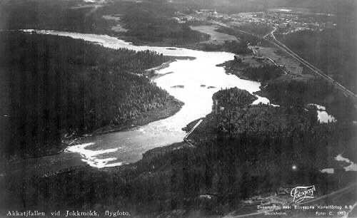 Bildtext: "Akkatjfallen vid Jokkmokk, flygfoto".