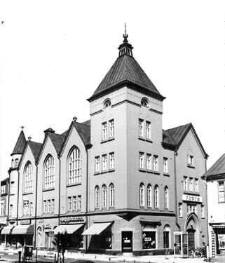 Fd baptistkyrkan Ebeneser, uppförd 1896. Byggnaden har gul slätputsad fasad, röd takplåt och stensockel.