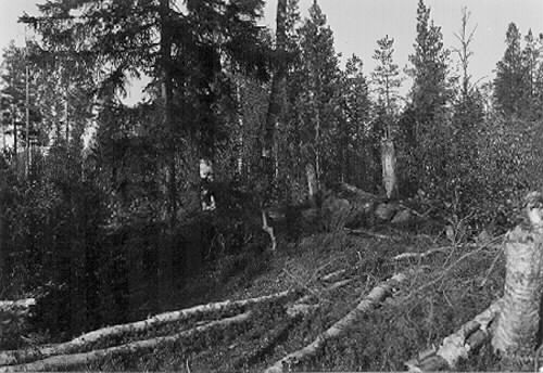 Ruinen efter hyttan vid bäcken, nära Hyttberget.