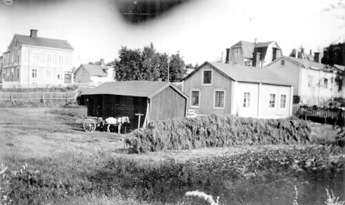 - Kvarteret Valen, korsningen Kungsgatan-Stationsgatan. Den stora byggnaden t.v är Ahrnells hotell. I början av 1900-talet hade Frälsningsarmen sina lokaler i byggnaden. När fastigheten revs hade hotellet bytt namn till "Perssons hotell.