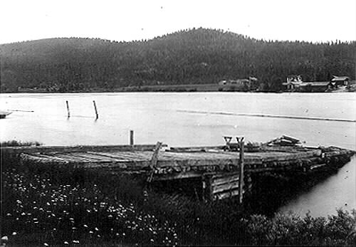 - Utsikt från norra älvbrinken mot sydost. Lilla Lule älv mellan Mattisudden och Smeds. I bakgrunden Linavaares båda toppar. Nedanför ligger gårdarna i Smeds. I förgrunden snedbrygga ned mot älven på timrade kar.