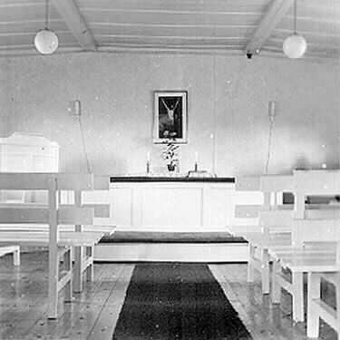 kapell; klockstapel; kyrkointeriör; altare; altartavla