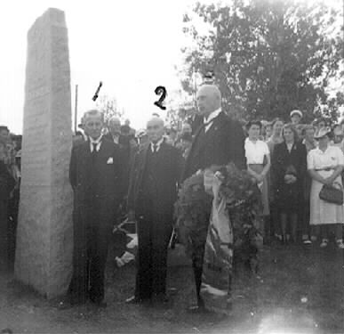 Från avtäckandet av minnesstenen över Adam Björk i Råneå 1934. Nummer ett och två på bilden är anhöriga till Adam Björk.
