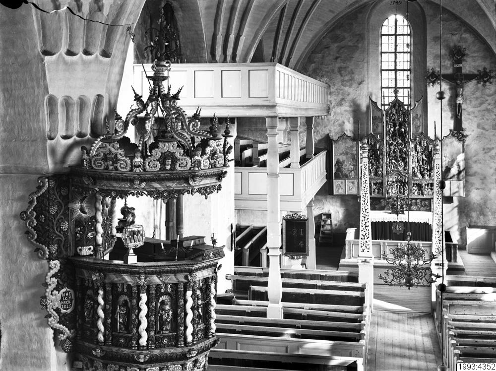 1993:4352 :: kyrkointeriör, predikstol, läktare