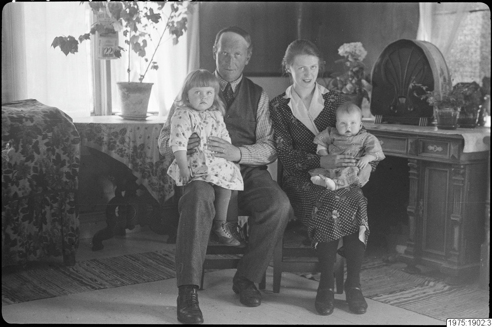 Levi och Thyra Sundström med barnen Gustin och Emmy i hemmet "Mitjel", Långnäs ca 1937.