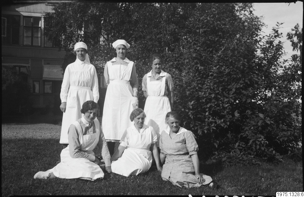 Hälsan i Antnäs på 1930-talet. 2. Kokerskan Ida Gustafsson, 4. Biträdet Märta Eriksson, 5. Köksbiträdet Svea Ahlkvist, 6. Baderskan Agda Olofsson.