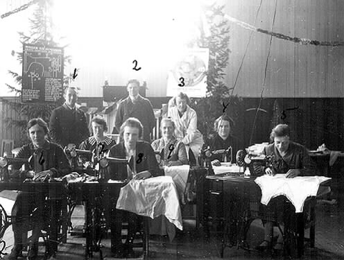 Från en sykurs i Långnäs på 1930-talet. 1, 2 och 3 är ledare. 4. Alvina Åström, 5. Ellen Ahlman, 6. Emma Thurfjell, 7. Mia Nyström, 8. Mirjam Brännström.