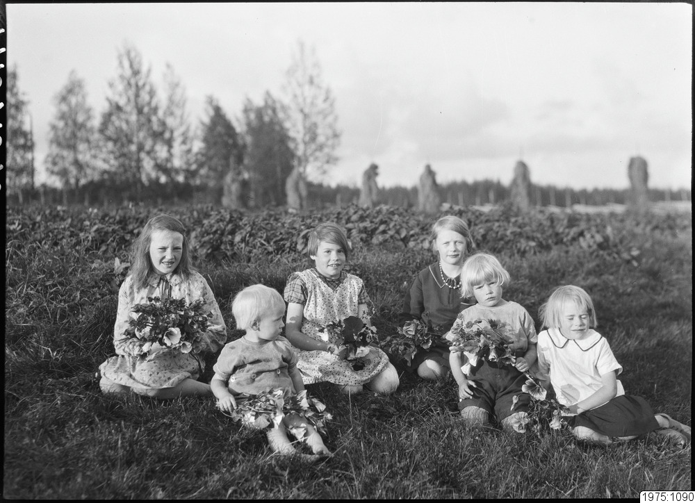 En del av barnaskaran Selberg i Hällfors.