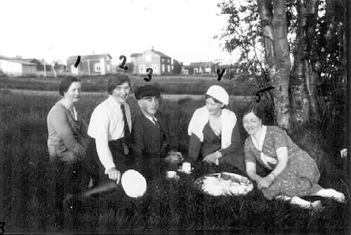 1. Ester Ahlström, 2. Ester Nyström, Antnäs, 3. Sixten Lundgren, Långnäs, 4. Helga Häggström, 5. Linnea Sandberg. Bilden är från 1930-talet.