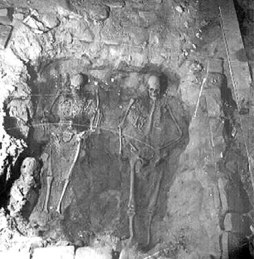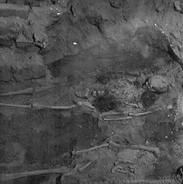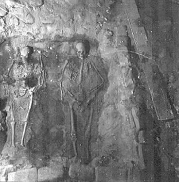 Arkeologisk undersökning 1970. Nederluleå sn, Gammelstad. Nederluleå kyrka. Grav i sakristian - skelett.