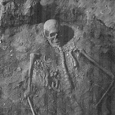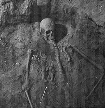 1970:122:7-8 :: arkeologi, undersökning, grav, benföremål, skelett