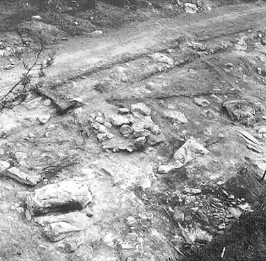 1-2. Anläggning 52, slutrensad, lodbild från väster.