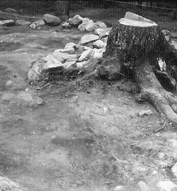 1. Anläggning 52, norra delen med förkolnad stock från norr.