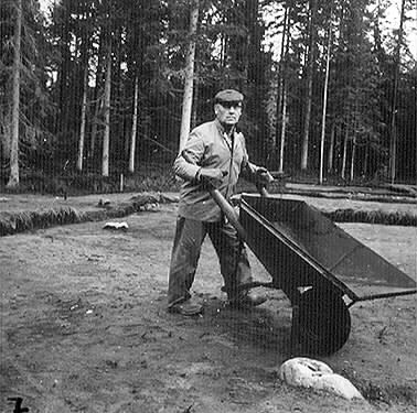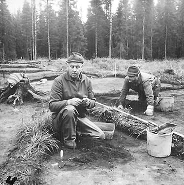 Arkeologisk undersökning 1970. Piteå sn, Kyrkbyn. Gamla kyrkbyn (fl 106). Översikt med personal.