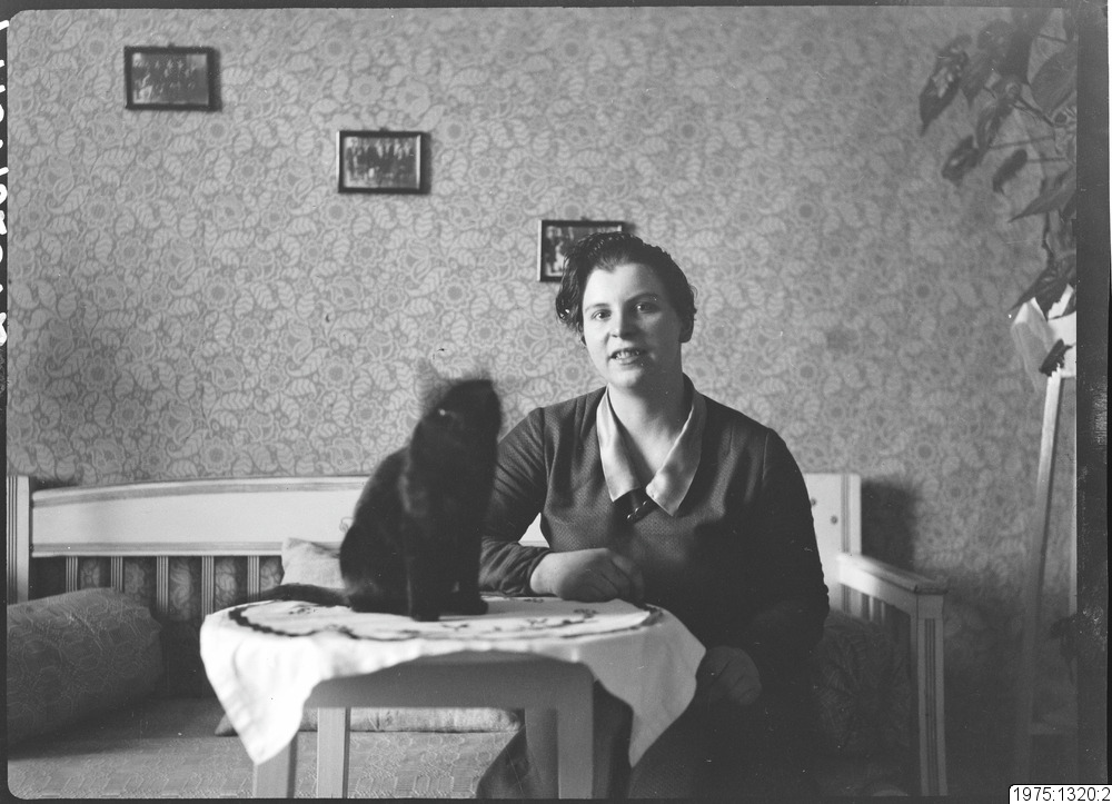 1975:1320:2 :: porträtt, kvinna, husdjur, katt