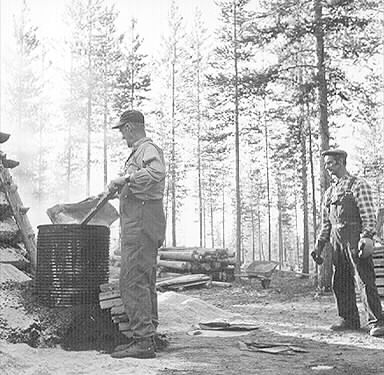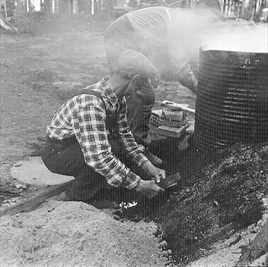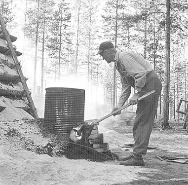 10-12. Eldning i tunnan.
