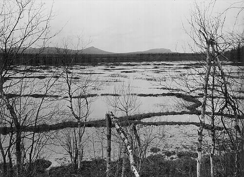 Vattenfylld revelmyr från inre delen av Muddusområdet. De vid norra horisonten synliga bergen är Syd- och Mellan-Stubba.