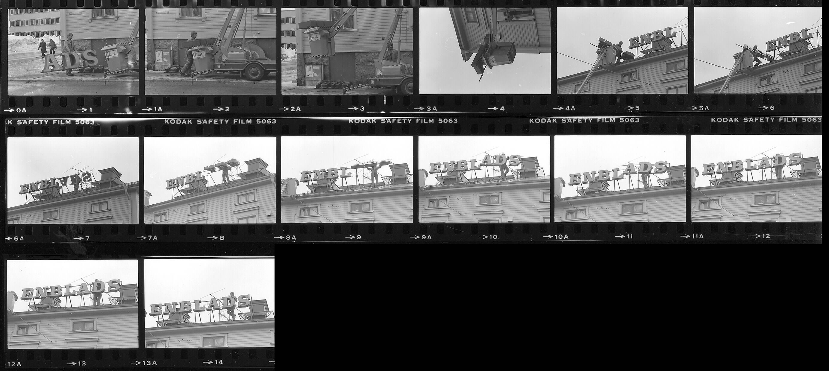 Byte av reklamskylt Enblads Express, korsningen Varvsgatan - Trädgårdsgatan.