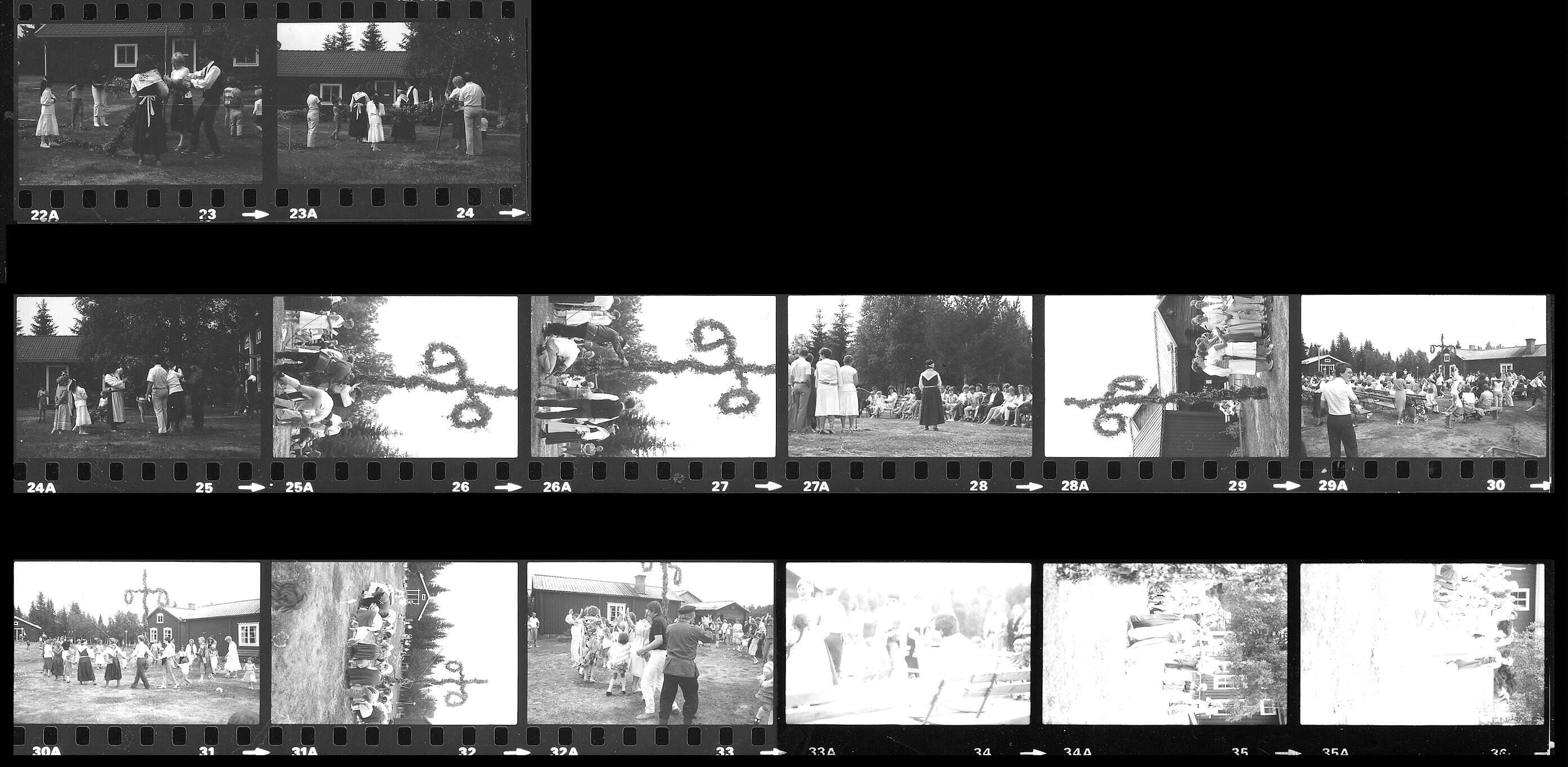 Resning av midsommarstång och midsommarfirande på Friluftsmuseet Hägnan.
