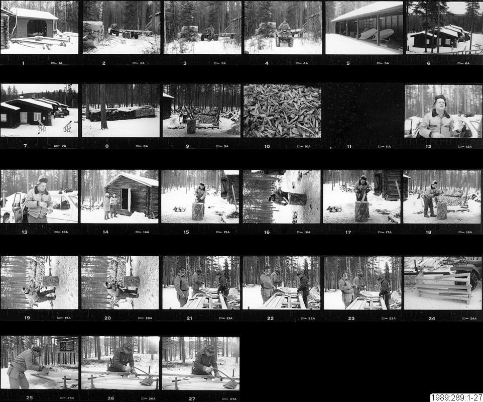 Fotodokumentation av uppsättning av byggnader för Flottningsmuseet i Storforsen, 1989-11-21.