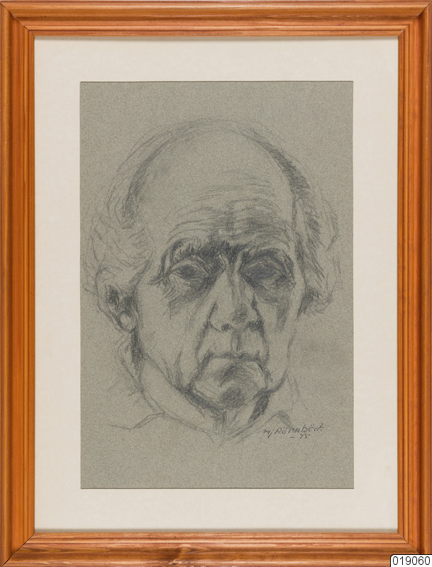 Porträtt av äldre man. Montering: Glasad med passepartout och brunbetsad profilerad ram.