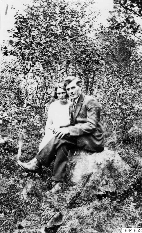 Anselm och Aina (född Vidman) Johansson, ca 1927. De var bosatta på nybygget Maddaur, Slagnäs.