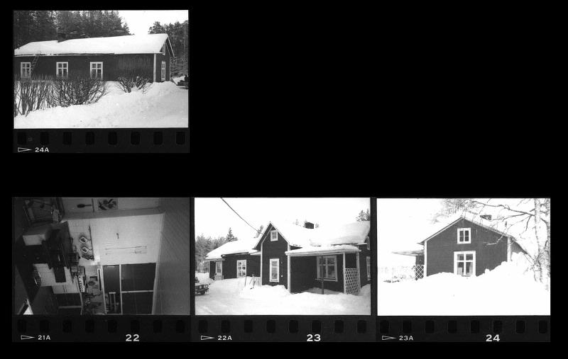 1995:135:22-24A :: bostadshus, fasad, panel, fönster, tak, papp, interiör, kök, spis, vedspis, kulturmiljövård, dokumentation