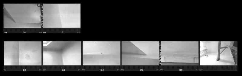 30-37. Skador i takputsen i rum över järnvägsgången. Dokumentation av befintliga skador före yttre takomläggning.