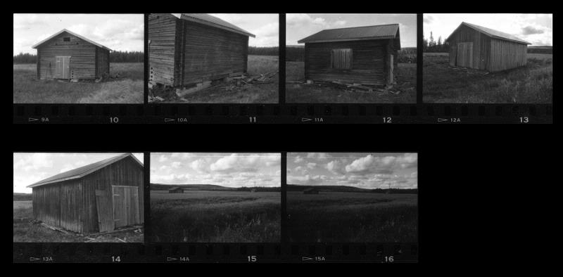 15-16. En brädlada och en timmerlada stående i det öppna åkerfältet.