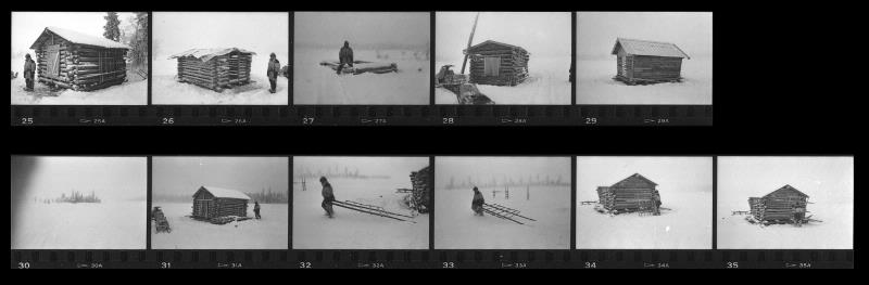 25A-31A. Myrslåtterlador på Tahkovuoma slåttermyr. Ägaren Tore Sevä syns i bild.