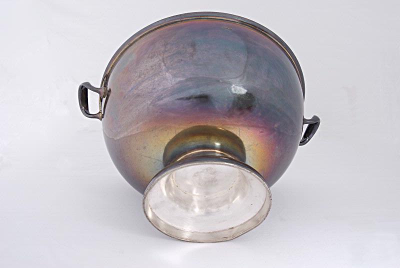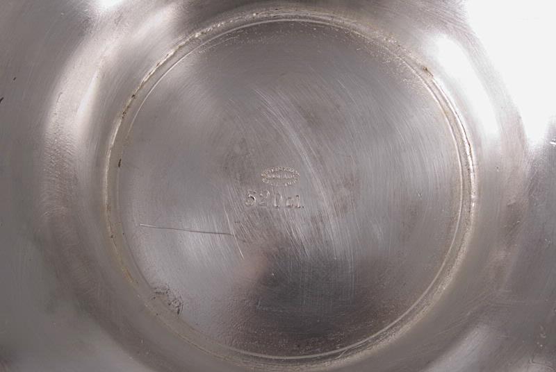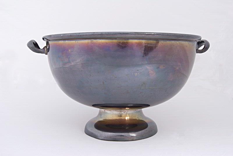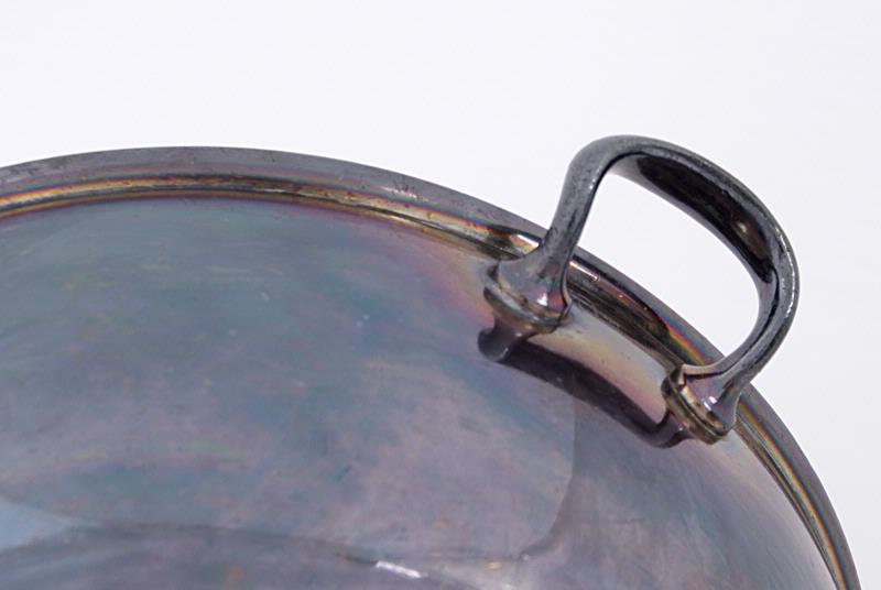 Rund soppskål av nysilver. Soppskålen har fot och två handtag med uppvinklad greppdel. Under foten står det:" GUST. ERIKSSON GENSE ALP. ESKILSTUNA 520 cl".