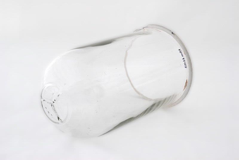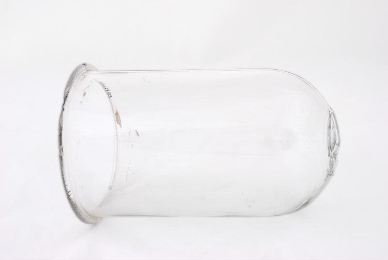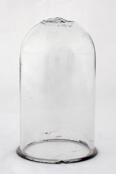 Skyddskupa till lampa av klart genomskinligt glas. På kupans rundade topp finns ett runt märke indelat i tre tårtbitar i vilka det står: "M", "S" och "FAB" i upphöjd relief.