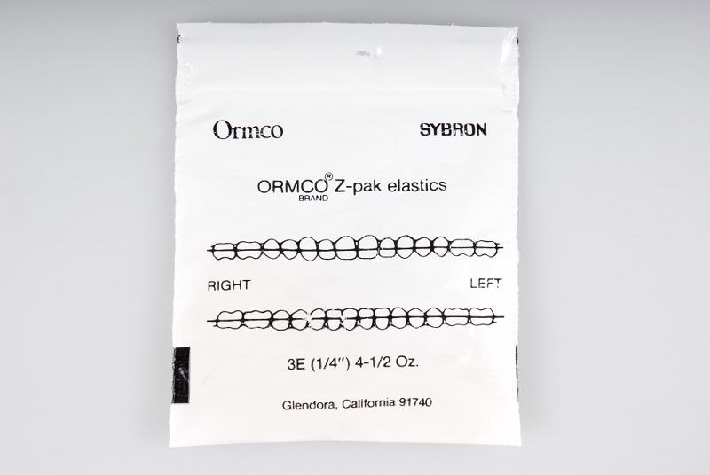 Ormco; ORMCO Z-pak elastics brand; SYBRON; Glendora,California 91740; Bear; 3E (1/4") 4-½ Oz.