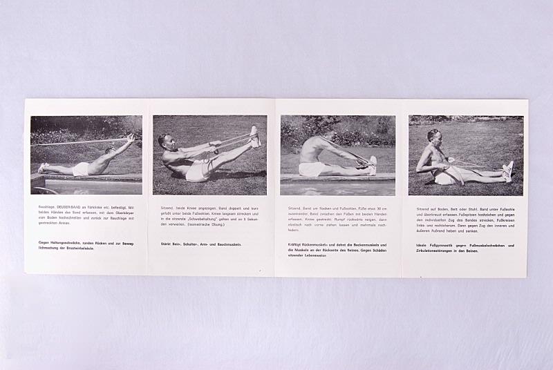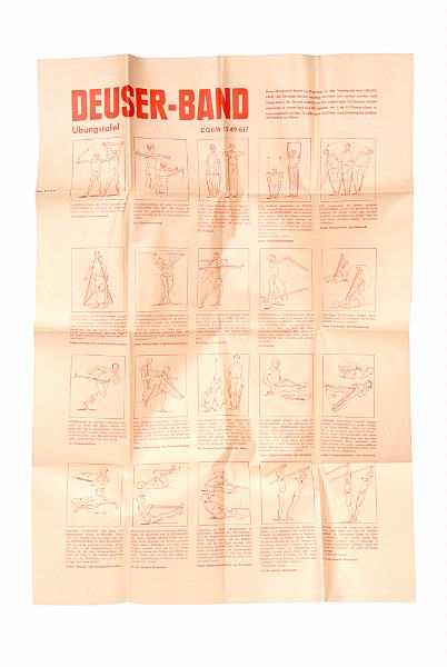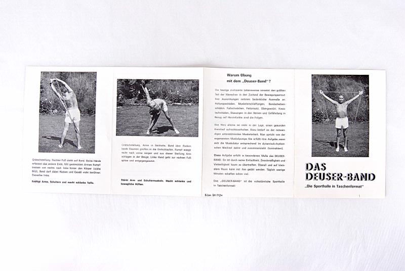 Deuserbandet uppfanns av fysioterapeuten Erich Deuser (1910-1993). Deuser var massör för det tyska fotbollslandslaget från 1951 till 1982. Ursprungligen användes cykelslangar vid träning av muskulaturen, men 1967 tog Deuser fram ett speciellt band av latexgummi. Bandet används för träning inom många olika idrotter, men också för rehabiliteringsövningar.; ”Detta fick min mor, av företagshälsovården någon gång på 1960-talet. När hon som sjukvårdbiträde hade fått de obligatoriska förslitningsskadorna i rygg och andra leder, så delade företagshälsan ut dessa till dem som sökte för besvären. Ett dåtida friskvårdsbidrag helt enkelt. Mor min arbetade som vårdbiträde på Kiruna sjukhus i 40 år. Jag tror att hon fick ut tre för¬packningar av dessa gummiband, varav detta är det kvarvarande oanvända som finns kvar.